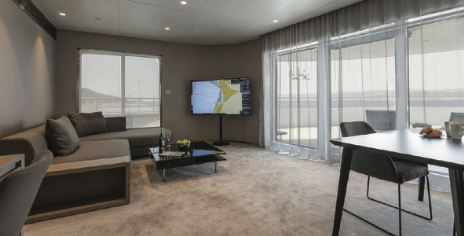 boasting plenty of space and innovative features for up to 100 guests and 76 crew.
